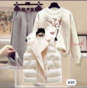 Женский комплект из трех предметов, осенне-зимний женский темпераментный жилет, свитер, брюки, теплый костюм из трех предметов.