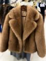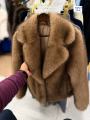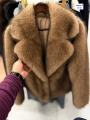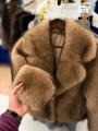 Элегантный зимний образ: премиальная, объемная шуба из искусственного меха в рыжим оттенке.