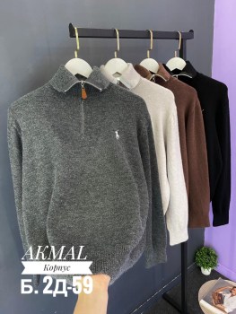Кашемировый свитер с кроп-молнией и со всадником с клюшкой.