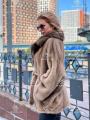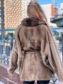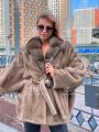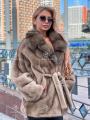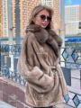 Шуба из меха премиальной импортной плюшевой норки с английским воротником из куницы.