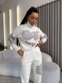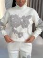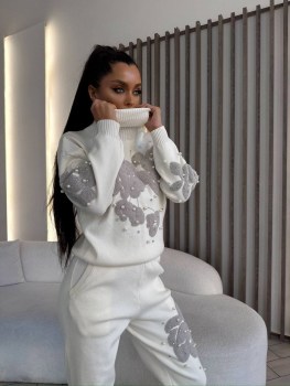 Наш трикотажный костюм свитер и брюки это идеальное рещение для комфортных и стильных дней Расшит бусинами и стразами.