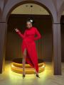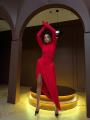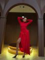 Роскошное платье с буфами и открытой спинкой.