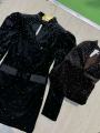 В наличии платье из плотного бархата,усыпанный крупным и маленькими камнями.