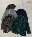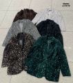 Свободный женский пиджак из бархата с пайетками oversize подчркивает расслабленный силуэт, а пайетки по всей поверхности создают выразительное блестящее мерцание при движении.