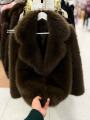 Объемная премиальная шуба из искусственного меха шоколадного оттенка.