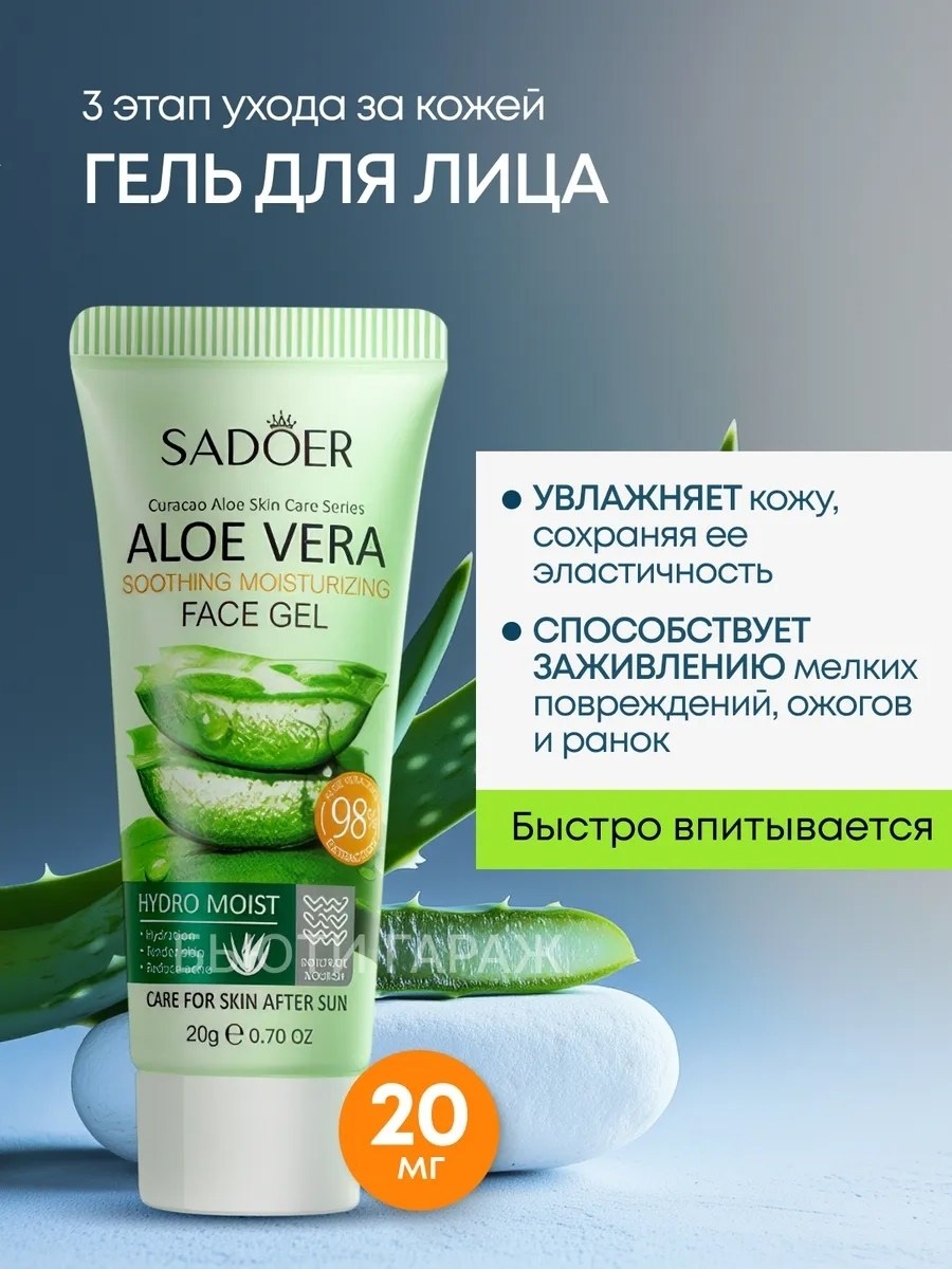 2) увлажняющий гель для лица sadoer с соком алоэ вера (40 г) интенсивно увлажняет, создавая защитную пленку, которая удерживает влагу и делает кожу гладкой и упругой.