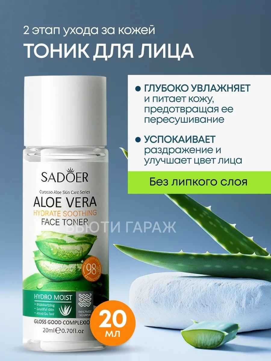 3) увлажняющий тонер для лица sadoer с соком алоэ вера (120 мл) питает кожу, увлажняет и помогает контролировать выработку кожного сала.