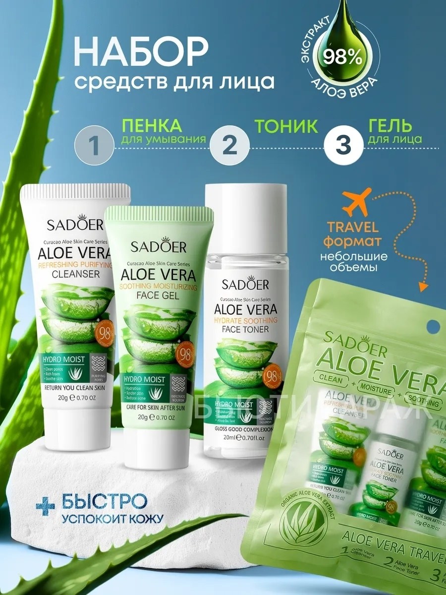 Подарочный набор для ухода за кожей с алоэ вера sadoer идеальное рещение для комплексного ухода и увлажнения Отлично подойдет в качество подарка.