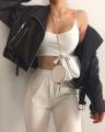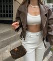 Тренд сезона - укороченная кожаная касуха приталеннего силуэта с карманами.