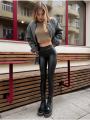 Женские теплые леггинсы лосины- стильная и практичная замена привычным брюкам и джинсам Кожаные черные леггинсы - тренд сезона Лосины теплые с начсом выполнены из высококачественной экокожи, поэтому станут базовой вещью в каждом гардеробе.