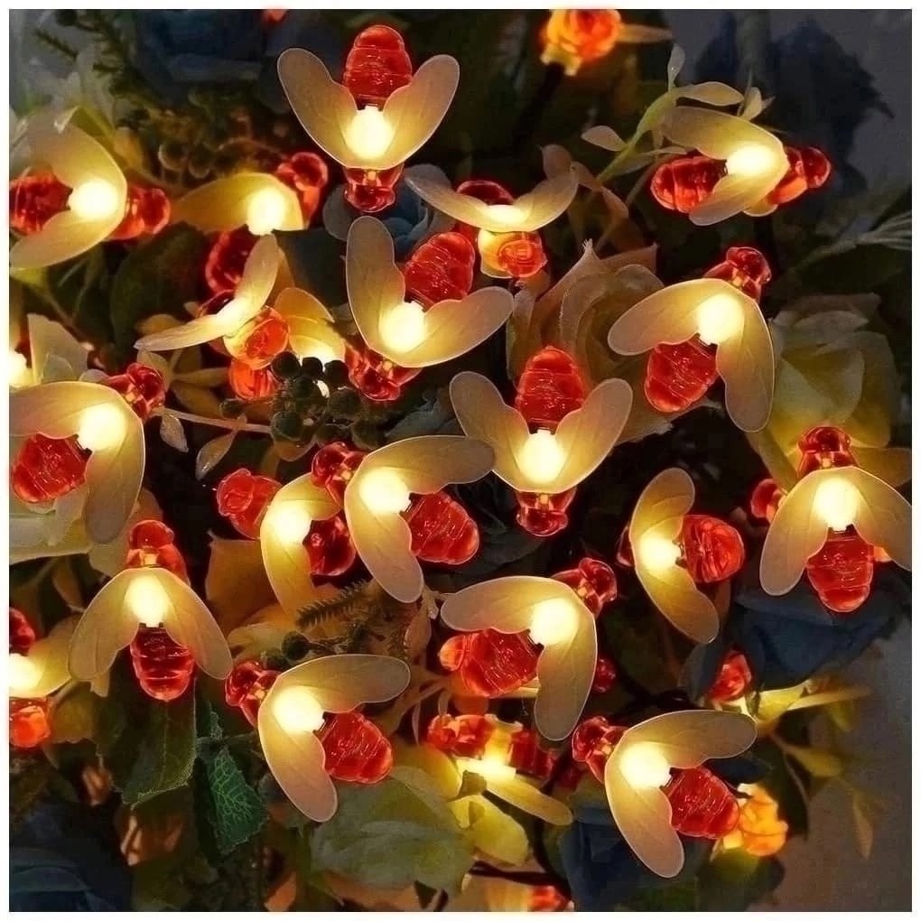 Гирлянда пчелки на прозрачном проводе, 4 метра.