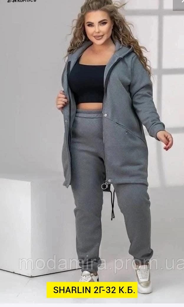 Получили новые шикарный костюм двойка большой размеры изготовлена.