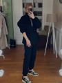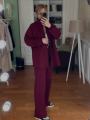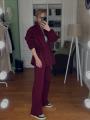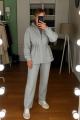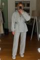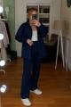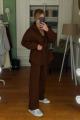 Объемная кофта с кулиской подчеркивает талию и придает шарму, а брюки прямого кроя создают идеальный силуэт.