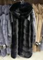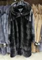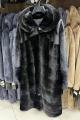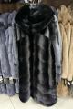 Шубка из меха европейской норки с капюшоном, модель кокон, цвет черный бриллиант.