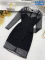 Вечернее женское платье состоит из прозрачной сеточки, украшенной вкраплением блесток.