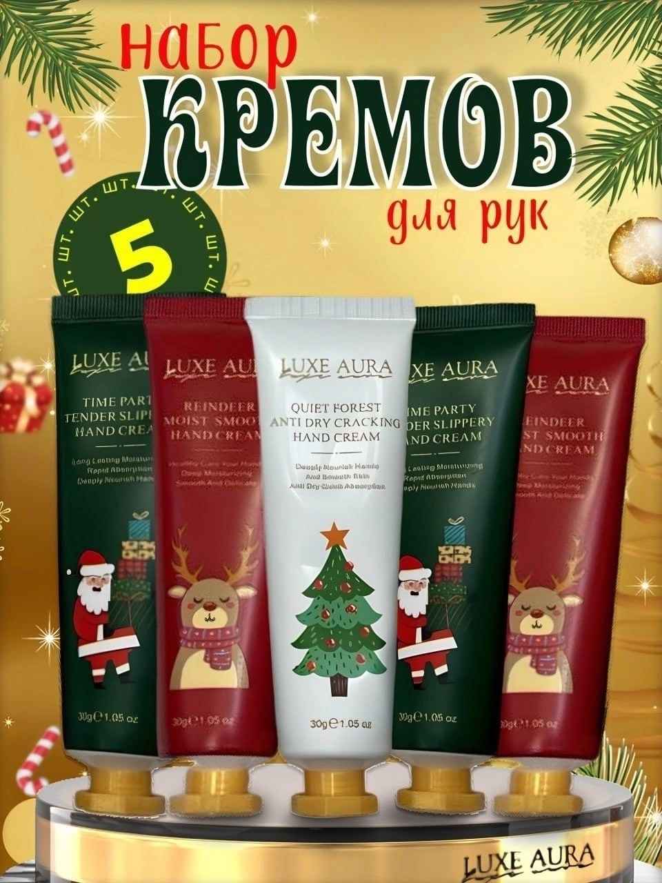 Подарочный набор новогодних кремов для рукluxe aura, 30 мл 5в1.