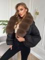 Качество lux стильный пуховик авто леди зима мех съмный натуральный писец.