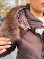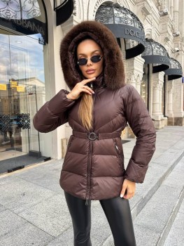 Стильная куртка, мех натуральный (съмный), наполнитель пух.