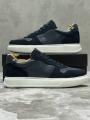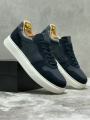 Мужские кроссовки синего цвета из натуральной замши и кожи Белая подошва, удобны для широкой стопы Подходят под джинсы и брюки.