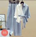 Женский комплект из брюк и рубашки с бантиком материал: джинса рубашка х/б с лайтом размеры:46 48 50 52 54 56цена: 800 руб.