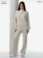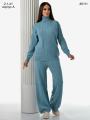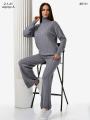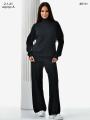 Тплый брючный вязаный трикотажный женский костюм Верх водолазка, низ брюки.