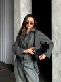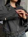 Женская короткая шерстяные куртка-косуха с ремнем из драпа тренд 2025 года.