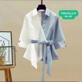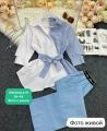 Женский комплект из брюк и рубашки с бантиком.