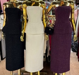 Элегантная двойка выполненная из фактурного твида с мелкими мерцающими пайетками Корсет красиво подчркивает линию талии и создат утончнный силуэт, а строгая юбка добавляет образу женственности и шарма Лгкое сияние твида делает комплект нарядным, но при этом сдержанным идеальный вариант для торжеств и стильных выходов.