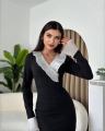 Черное платье миди с белыми плиссированными вставками на воротнике и манжетах Элегантное и стильное идеально для офиса или вечера.