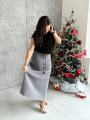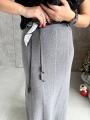 Юбка трикотажная а-силуэта с шелковым ремешком.