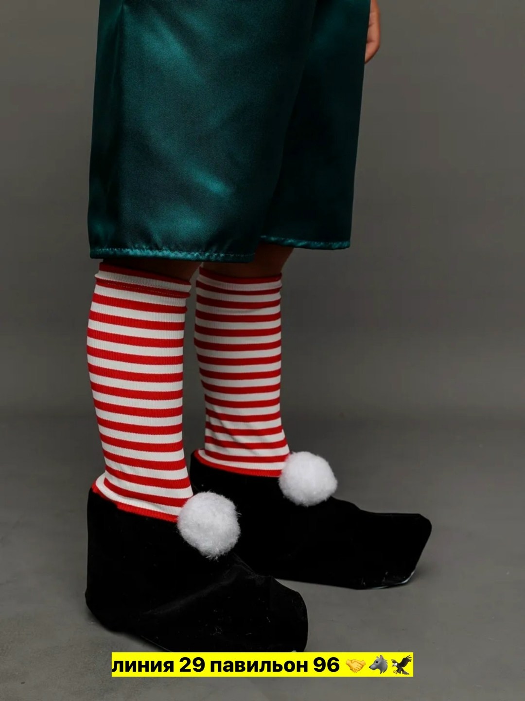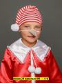 В рубашка, шорты, башмачки с гетрами, колпак, нос.