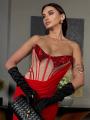 Вечерное длинное платье с полупрозрачным корсетом и пайетками, без бретелей, элегантное и эффектное.