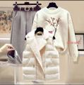 Женский комплект из трех предметов, осенне-зимний женский темпераментный жилет, свитер, брюки, теплый костюм из трех предметов.