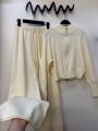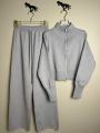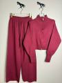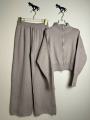 Комфортный женский костюм-двойка из трикотажа с машинной вязкой: свитер на двойном замке-зип и широкие штаны Качествонные материалы обеспечивают тепло и стиль, а продуманная застжка позволяет регулировать посадку и образ.