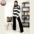 Женская мягкая кашемировая тройка: свитер в полоску, брюки клеш, шапочка бини с отворотом это не просто комплект одежды, это приглашение в мир, где изысканность кашемира становится осязаемой, а каждая минута, проведенная в этом ансамбле, превращается в чувственное наслаждение Это обещание нежности, окутывающей тело, словно легкое облако, и дарящей ощущение безграничного комфорта и безмятежного уюта.