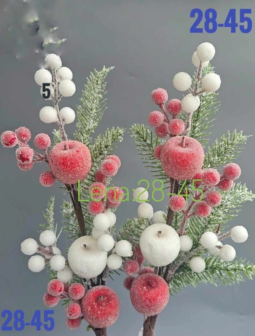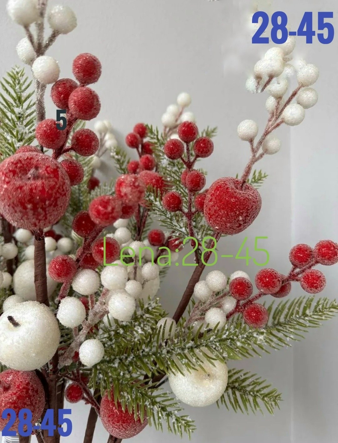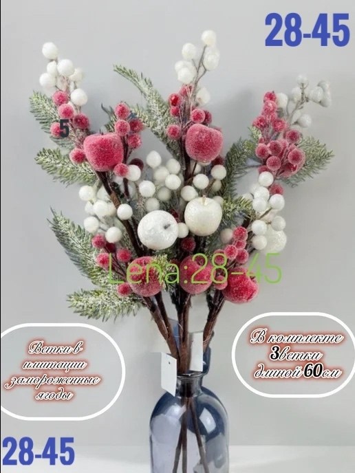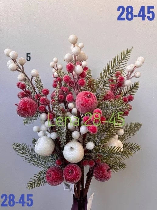 Новогодние ветки с ягодами и яблоками.