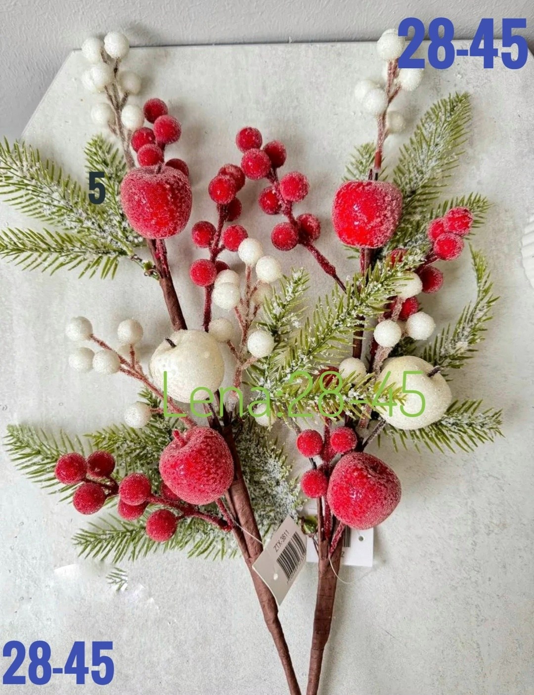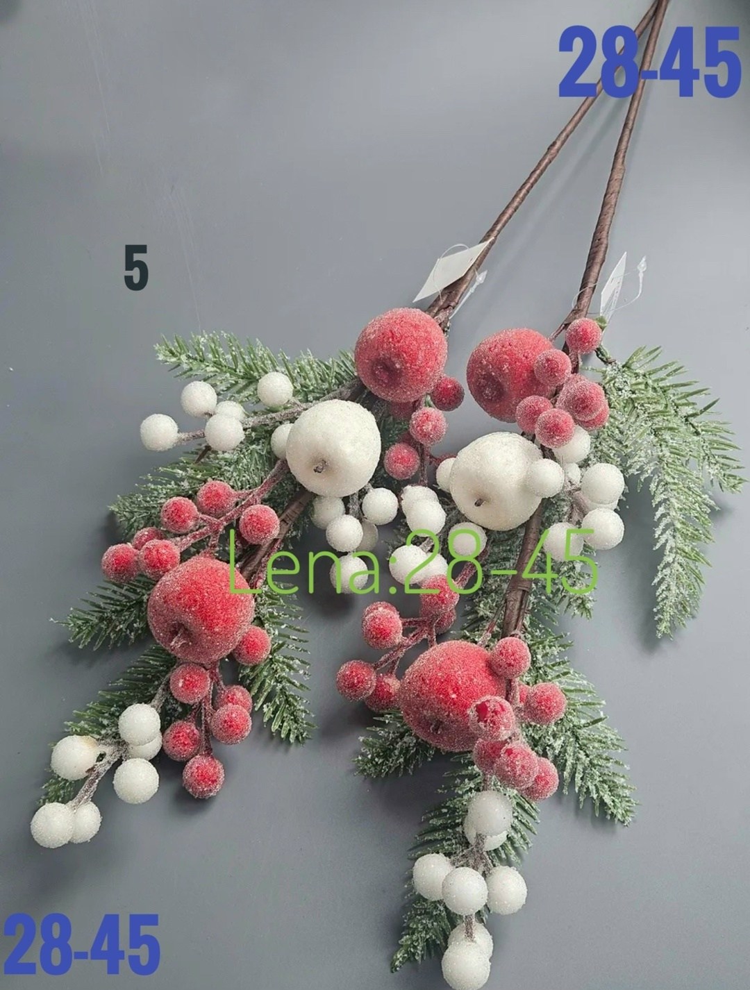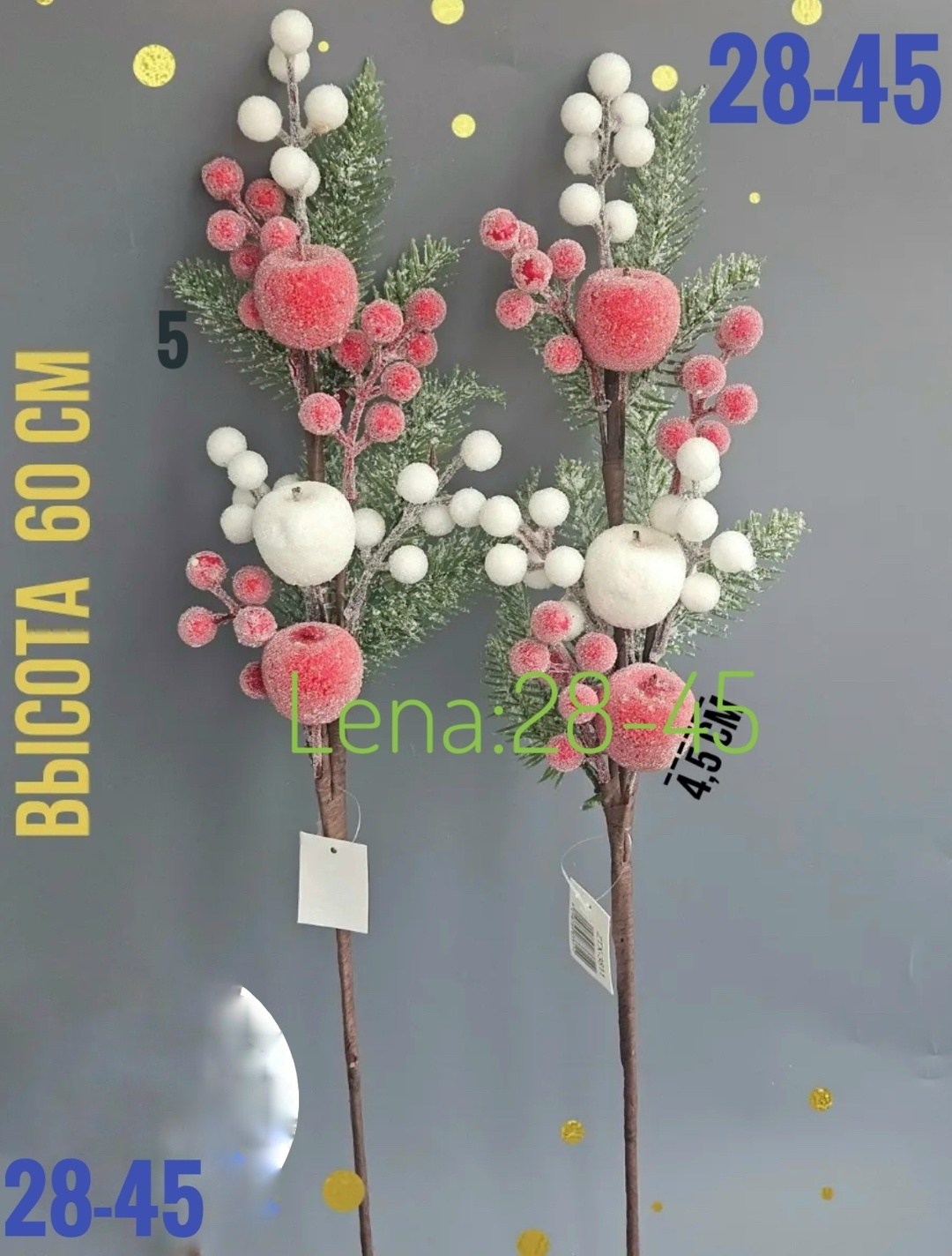 Новогодние ветки с ягодами и яблоками.