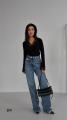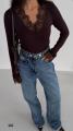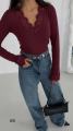 Трендовый лонгслив с глубоким v-вырезом и ажурной гипюрной вставкой по декольте и манжетам Эффектно подчеркивает линию шеи и смотрится женственно с джинсами, брюками и юбками.