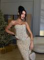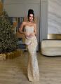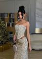 Элегантный комплект с корсетом и юбкой в пол, украшенный мерцающей отделкой Корсет подчркивает линию плеч и талию, создавая утончнный силуэт, юбка мягко струится и визуально вытягивает фигуру.