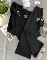Модель выполнена в стиле оверсайз с широкими брючками.