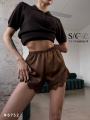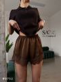 Атласные шорты с гипюровым кантом
