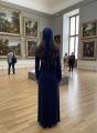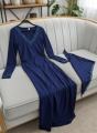 Элегантное темно-синее платье макси силуэта с изящной кружевной отделкой на вырезе и манжетах В комплекте гармоничный платок с тонким кружевом, идеально дополняющий образ, придавая ему легкость и изысканность Идеальный выбор для вечерних мероприятий и особых случаев.