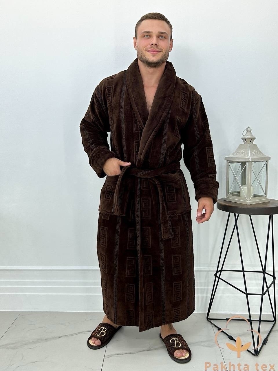 Мужской халат с шалькой, внешняя сторона велюр,внутренняя сторона махра.