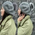Женский зимний двойной берет
