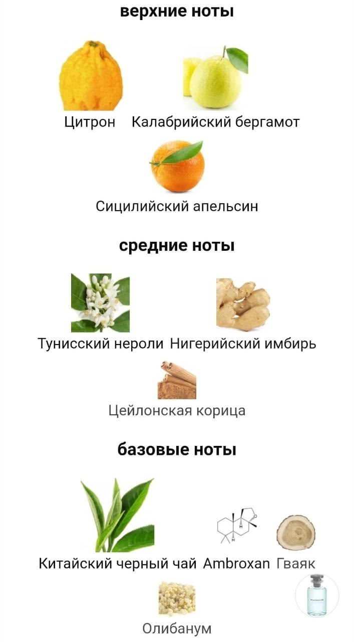 Imaginationверхние ноты: цитрон, калабрийский бергамот и сицилийский апельсин; средние ноты: тунисский нероли, нигерийский имбирь и цейлонская корица; базовые ноты: китайский черный чай, ambroxan, гваяк и олибанум.
