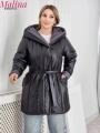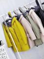 Широкий пояс позволяет подчеркнуть линию талии, манжеты с отворотом.
