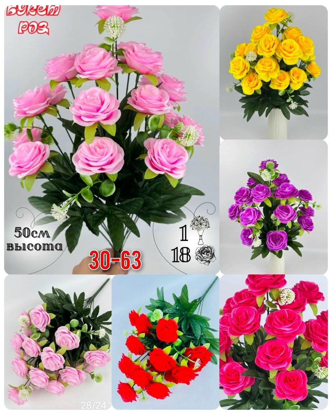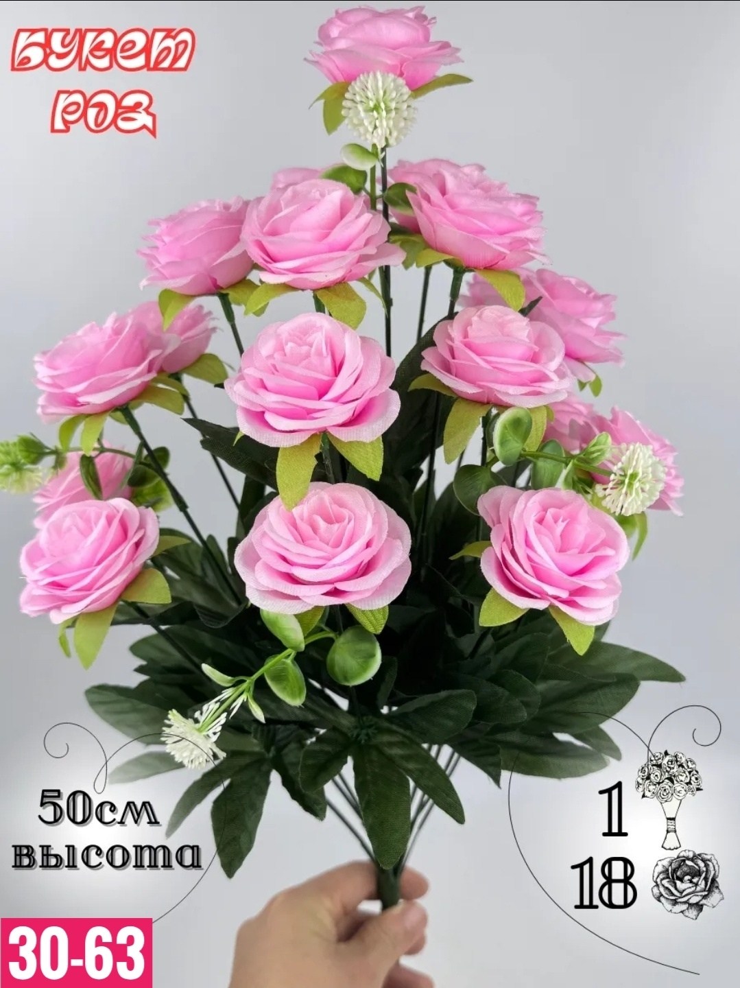 Размер 1 букет: 18 голов, 50 см