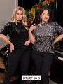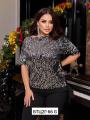 Блузка с короткими рукавами и с блестками спереди.