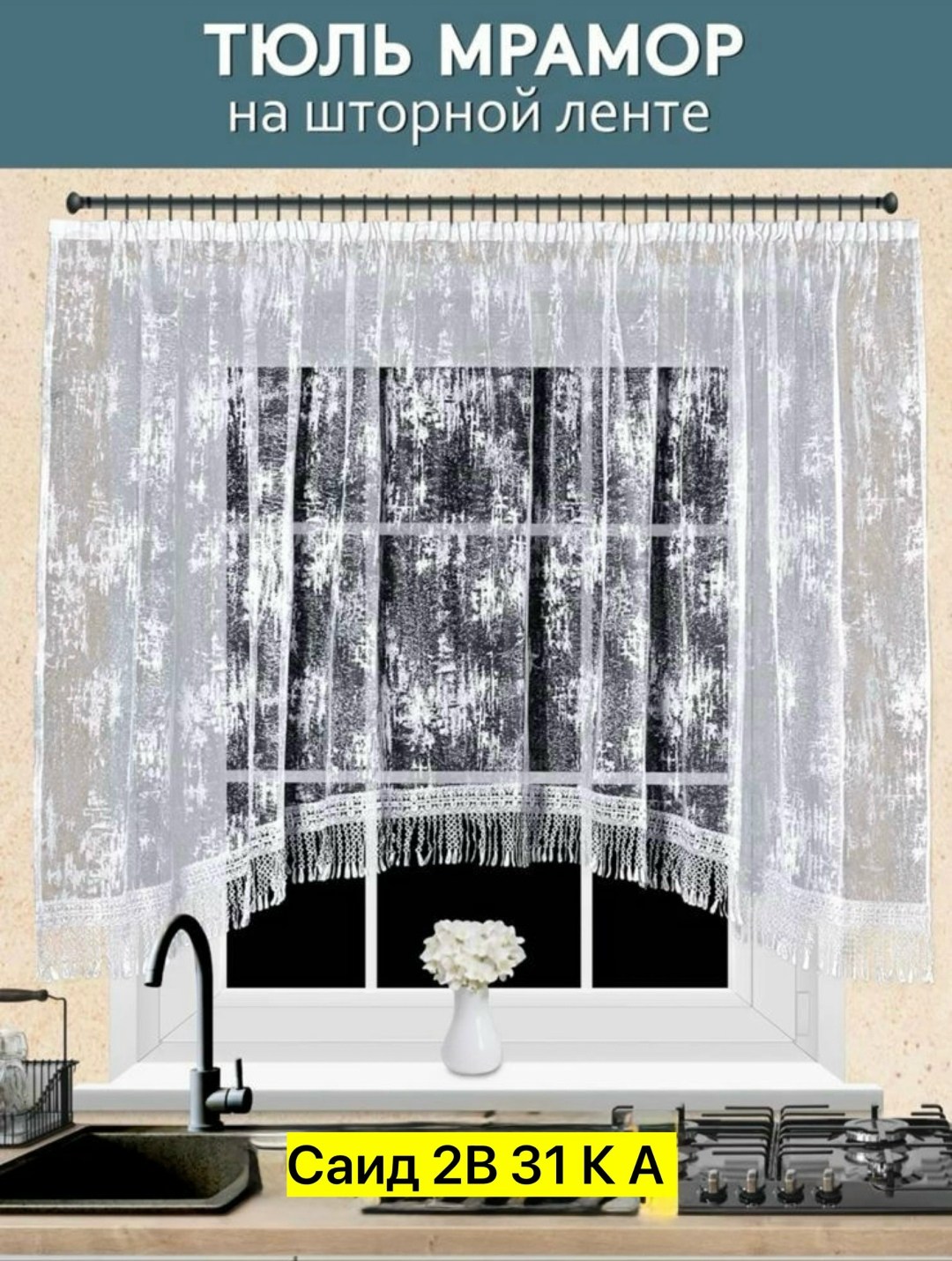 Тюль для кухни мрамор