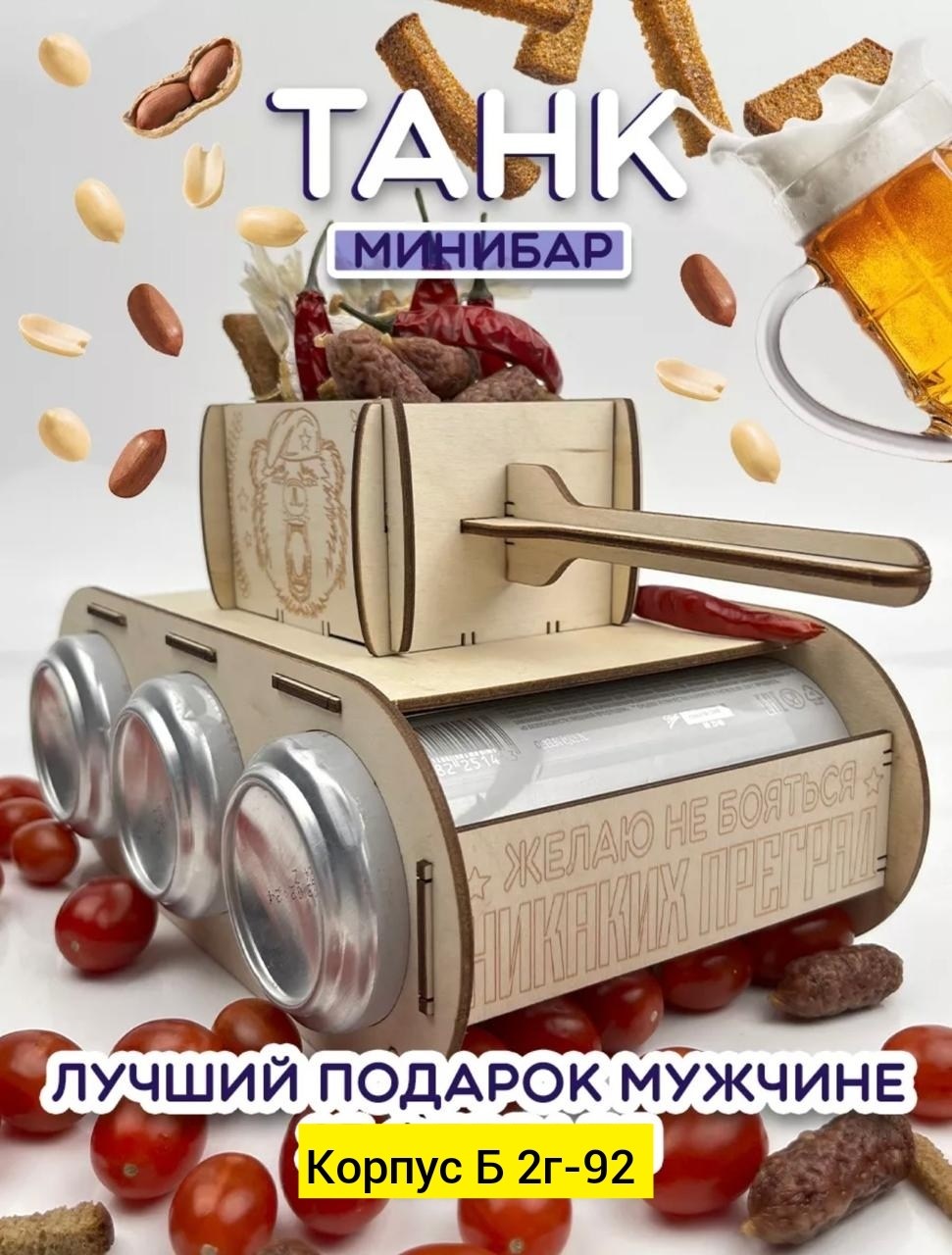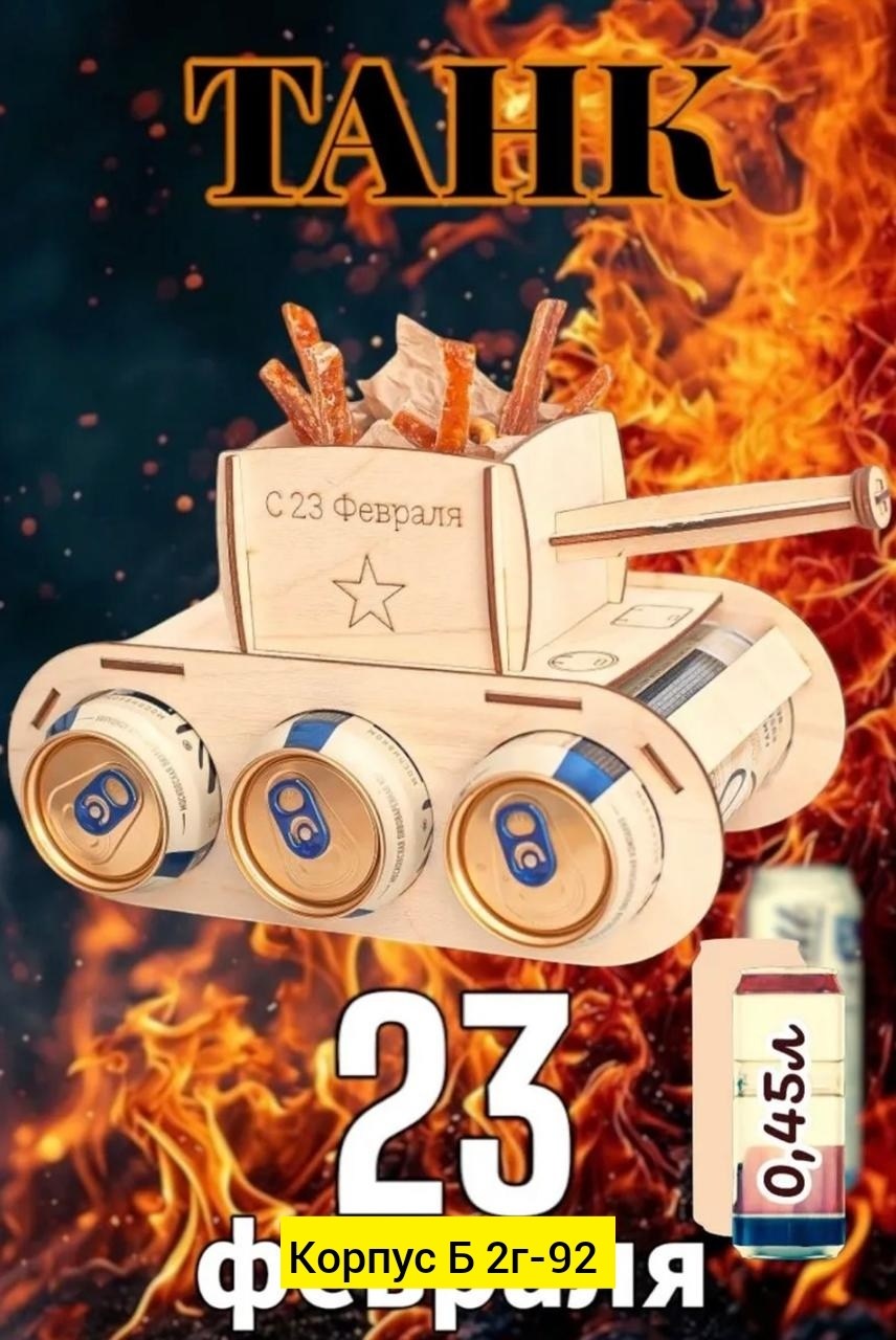 Декоративная подставка танк под пиво Оригинальный подарок для мужчин на 23 февраля, день рождения, новый год, 9 мая и на любой другой праздник Деревянный тан.